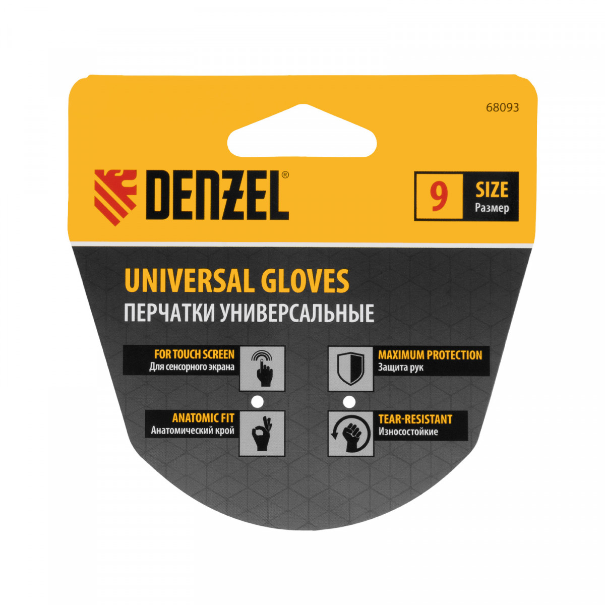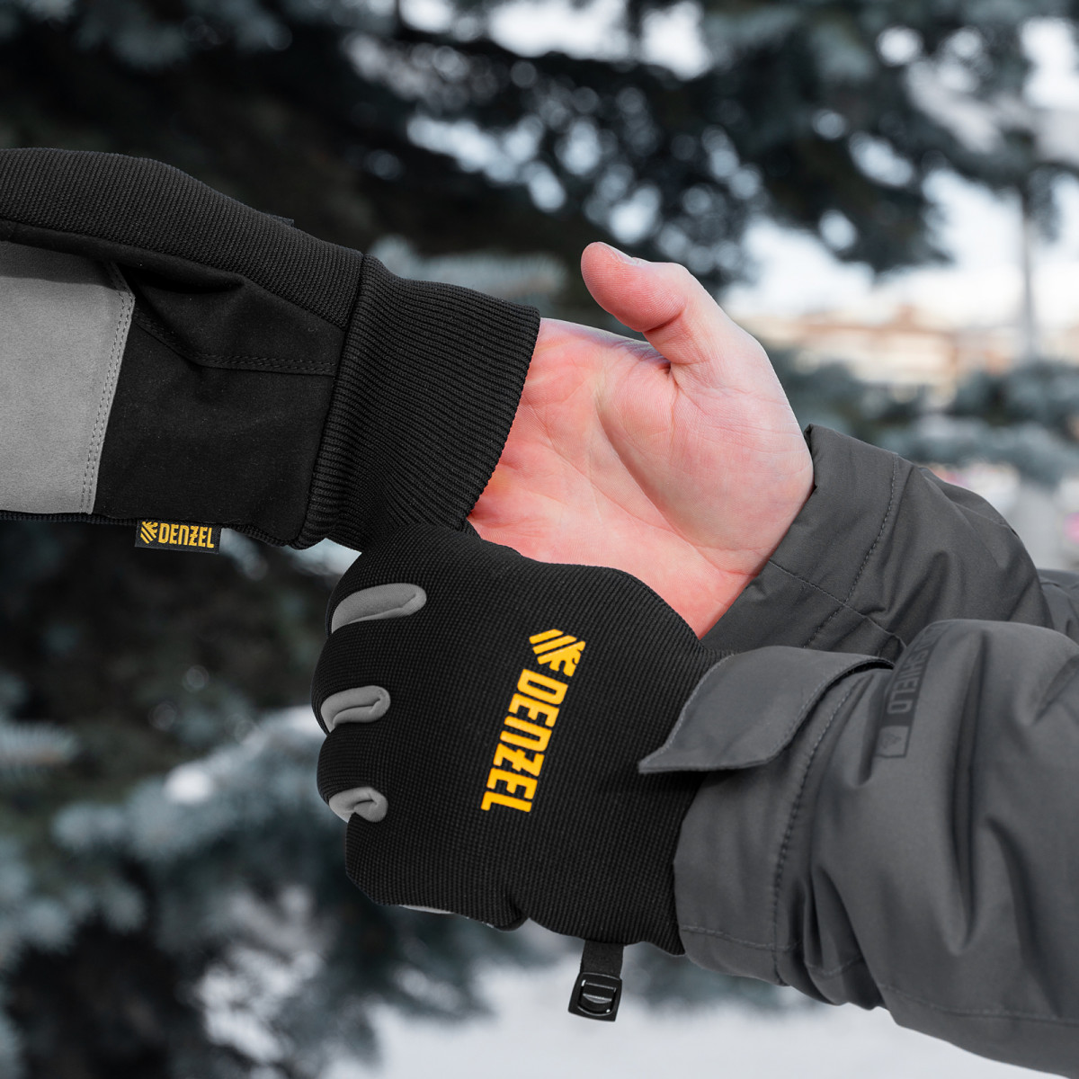 Перчатки универсальные, двойные, работа с сенсорным экраном, вязаная манжета, размер 9 Denzel