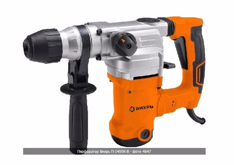 Перфоратор Вихрь П-1400к-в 72/3/8 применяется для проделывания отверстий в твердых материалах: металле, бетоне, кирпиче. Функционирует в трех режимах: сверление, ударное сверление, долбление.