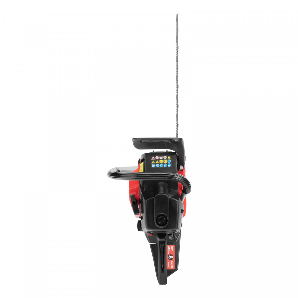 • Безопасная эксплуатация — функция блокировки газа предотвращает случайный запуск, тормоз цепи снижает риск травмирования при отскоке пилы.