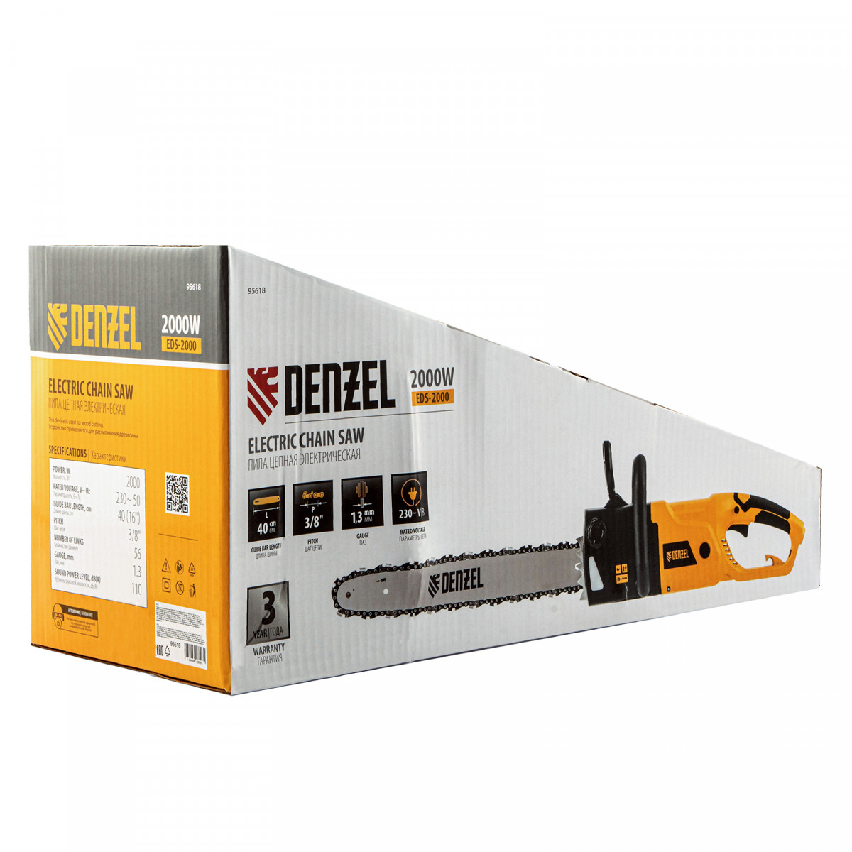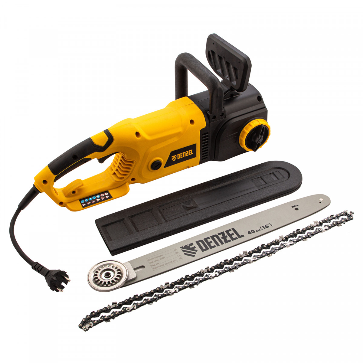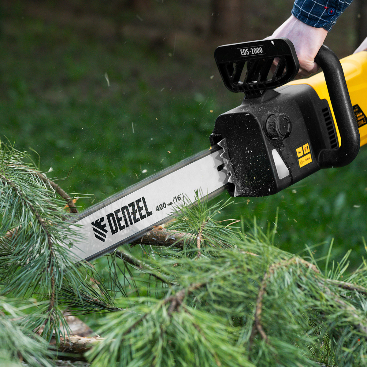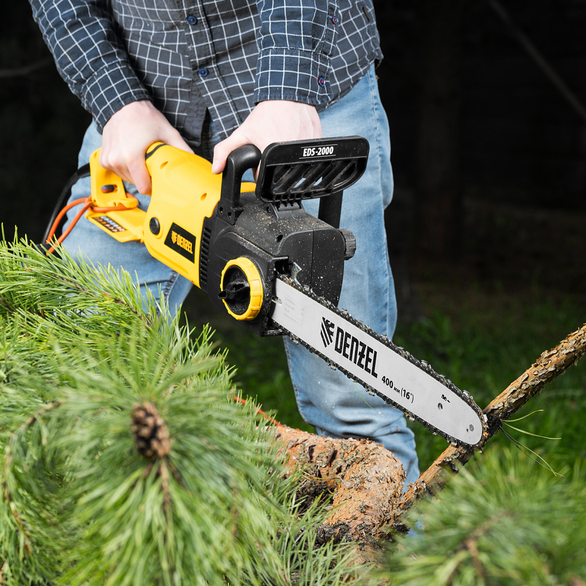 Пила цепная электрическая EDS-2000, 2 кВт,продольная, шина 40 см, шаг 3/8, паз 1.3 мм, 56 звеньев Denzel
