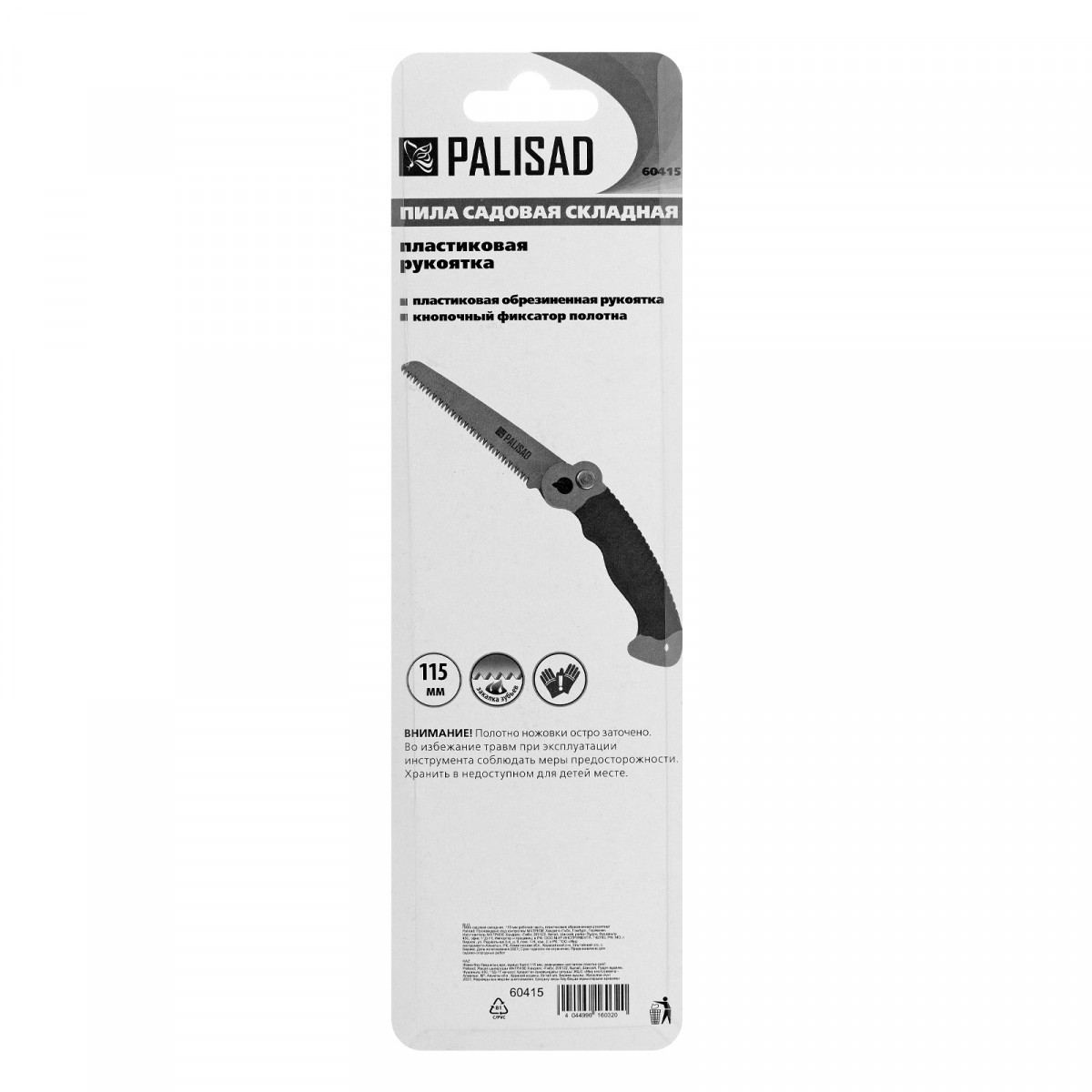 Пила садовая складная, 115 мм рабочая часть, пластиковая обрезиненная рукоятка, Palisad