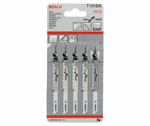 Пильное полотно предназначено для лобзиков по древесине. Материал пилки — высокоуглеродистая сталь (HCS), поэтому можно работать с достаточно широкими заготовками, не опасаясь излома. Расположенные под свободным углом отшлифованные зубья позволяют делать чистый рез по таким материалам, как мягкая древесина, фанера, плиты с покрытием (1,5-15 мм). Подходит для выполнения криволинейных пропилов. Хвостовик пилки имеет один упор.