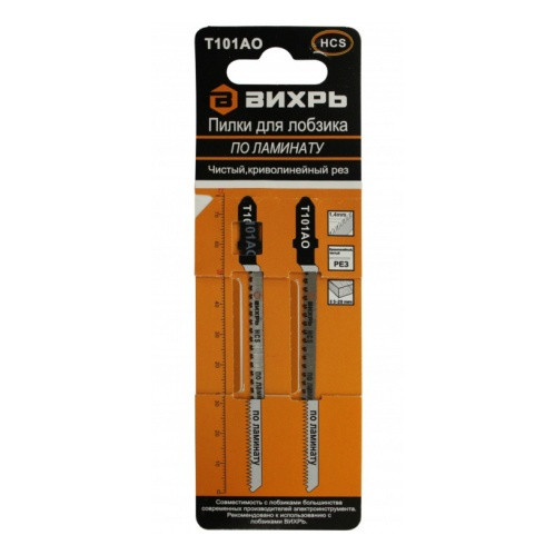 Пилки для лобзика Т101АО по ламинату,чистый,криволинейный рез 76х50мм (2 шт) Вихрь