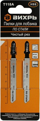 Пилки для лобзика Т118A по стали,чистый рез 76х50мм (2 шт) Вихрь