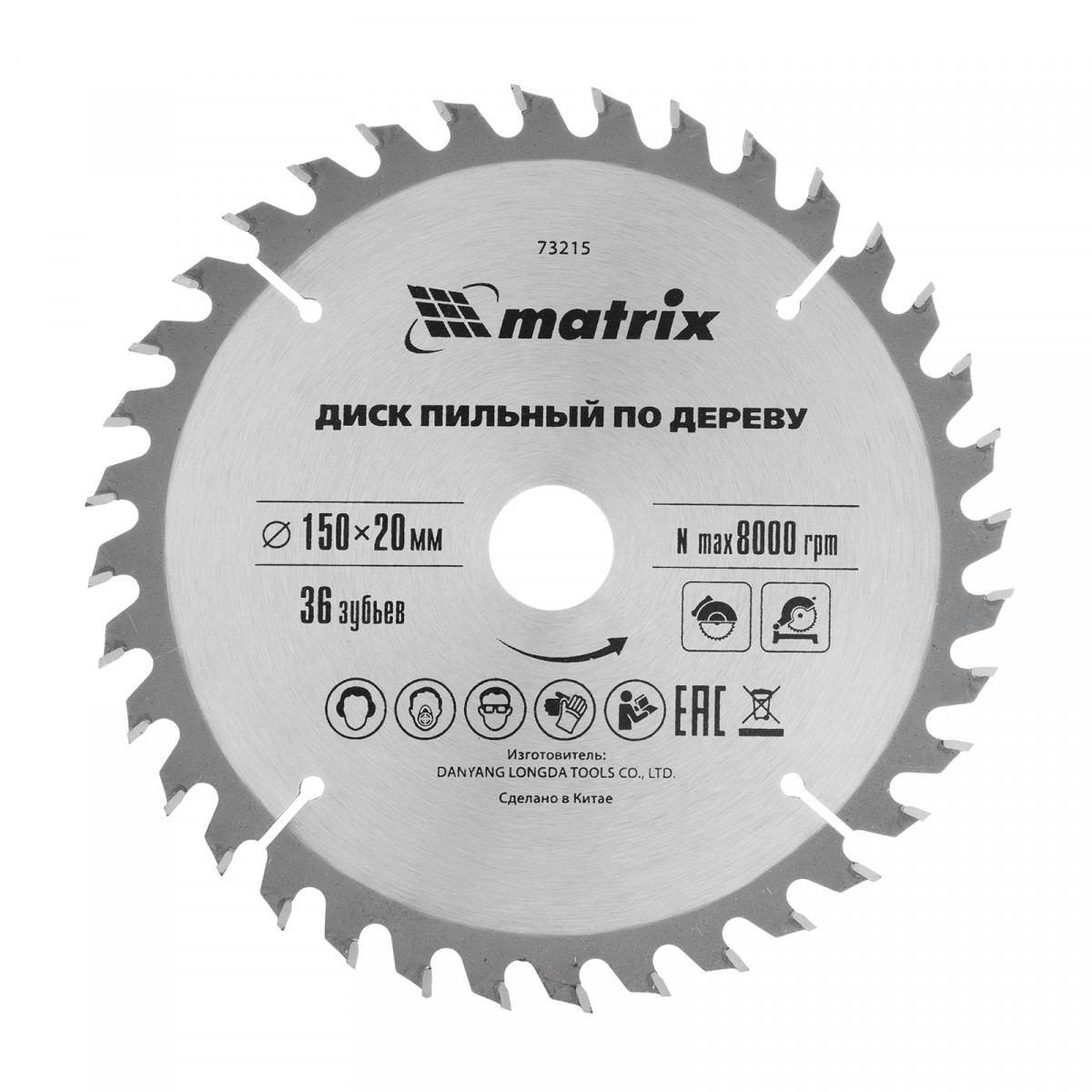 Пильный диск по дереву, 150 х 20 мм, 36 зубьев, кольцо 16/20 Matrix Professional