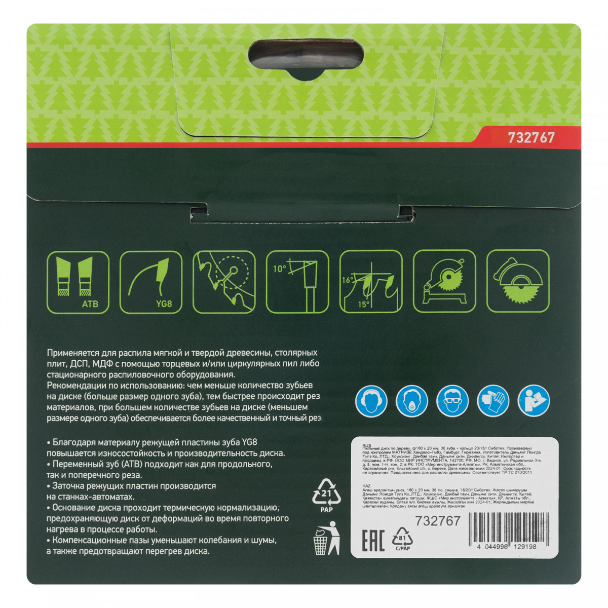 • Универсальность — зубья типа АТВ позволяют производить как продольный, так и поперечный рез.