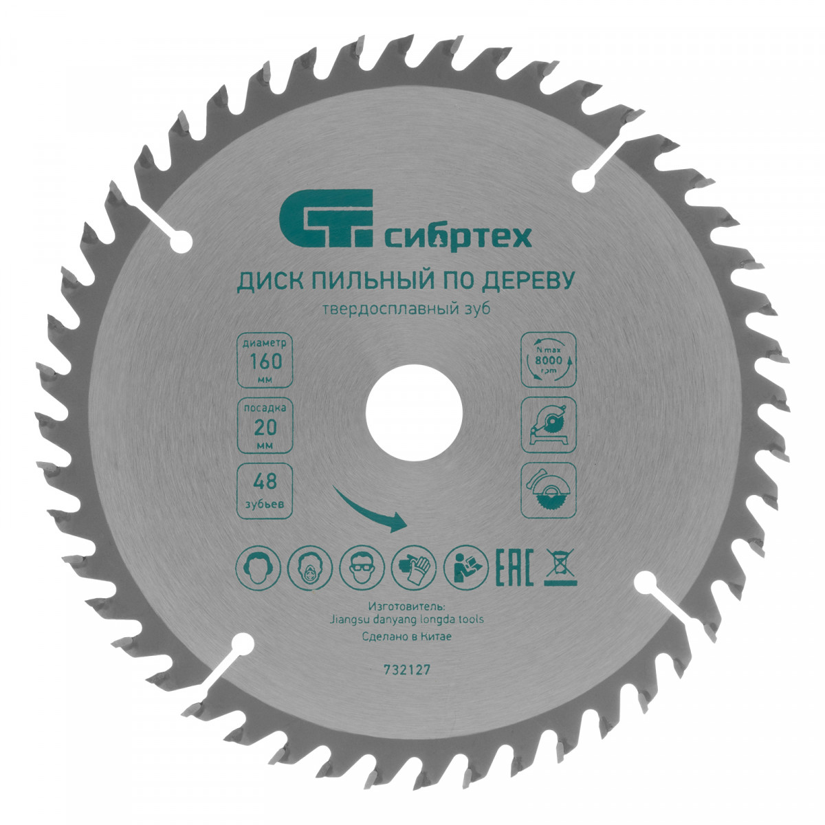 Пильный диск по дереву, 160 х 20 мм, 48 зуба, кольцо 16/20 Сибртех