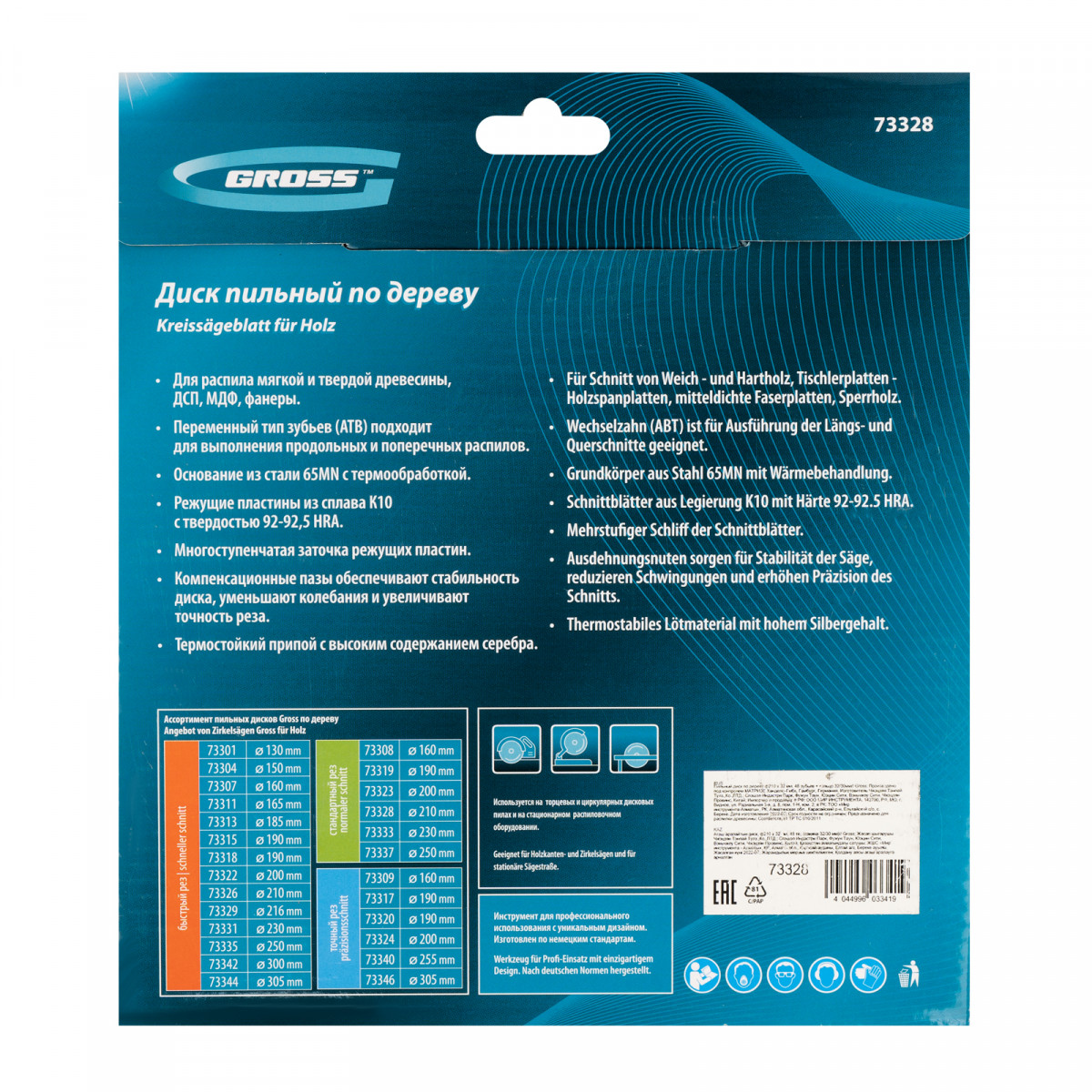 Пильный диск Gross 73328 диаметром 210 х 32 мм, с 48 зубьями и переходным кольцом 32/30 мм, предназначен для распила древесины мягких и твердых пород, ДСП, МДФ и фанеры. Используется в качестве оснастки для циркулярных и торцовочных пил с посадочным диаметром 32 мм, благодаря универсальному типу зубьев АТВ используется преимущественно для поперечного реза материалов. Диск изготовлен на высококачественном оборудовании, специально рассчитан на профессиональное применение и выполнение большого объема работ.