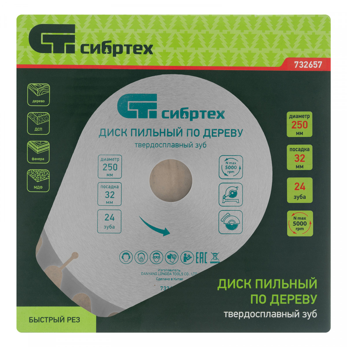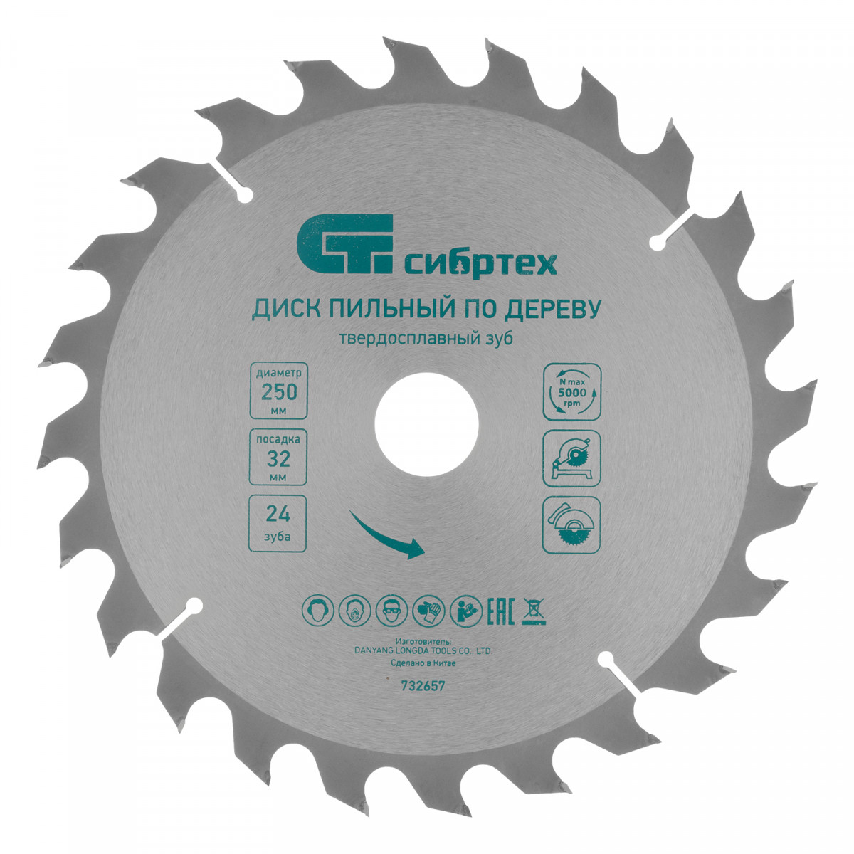 Пильный диск по дереву, 250 х 32 мм, 24 зуба Сибртех