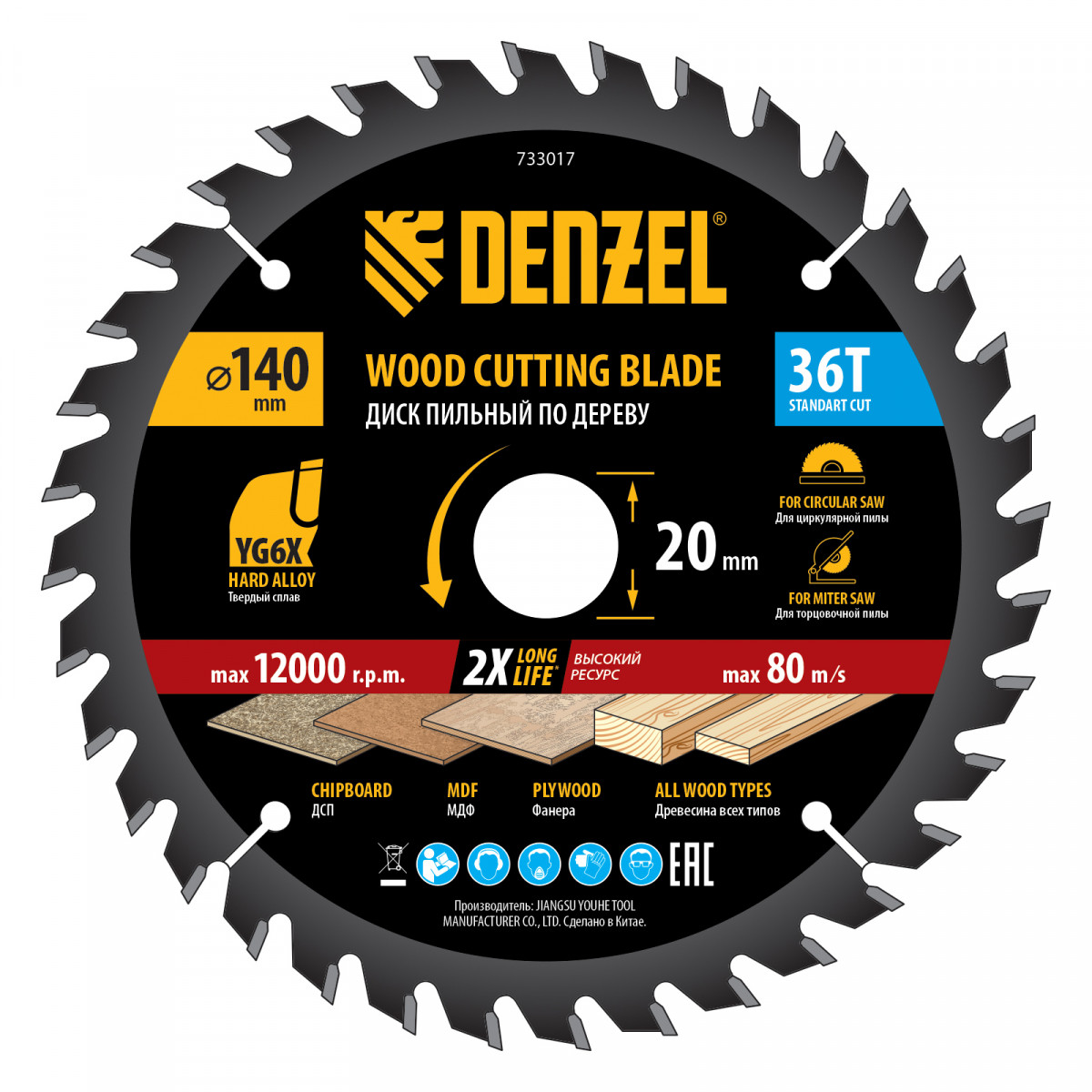 Пильный диск по дереву ф140 х 20 мм, 36 зубов Denzel