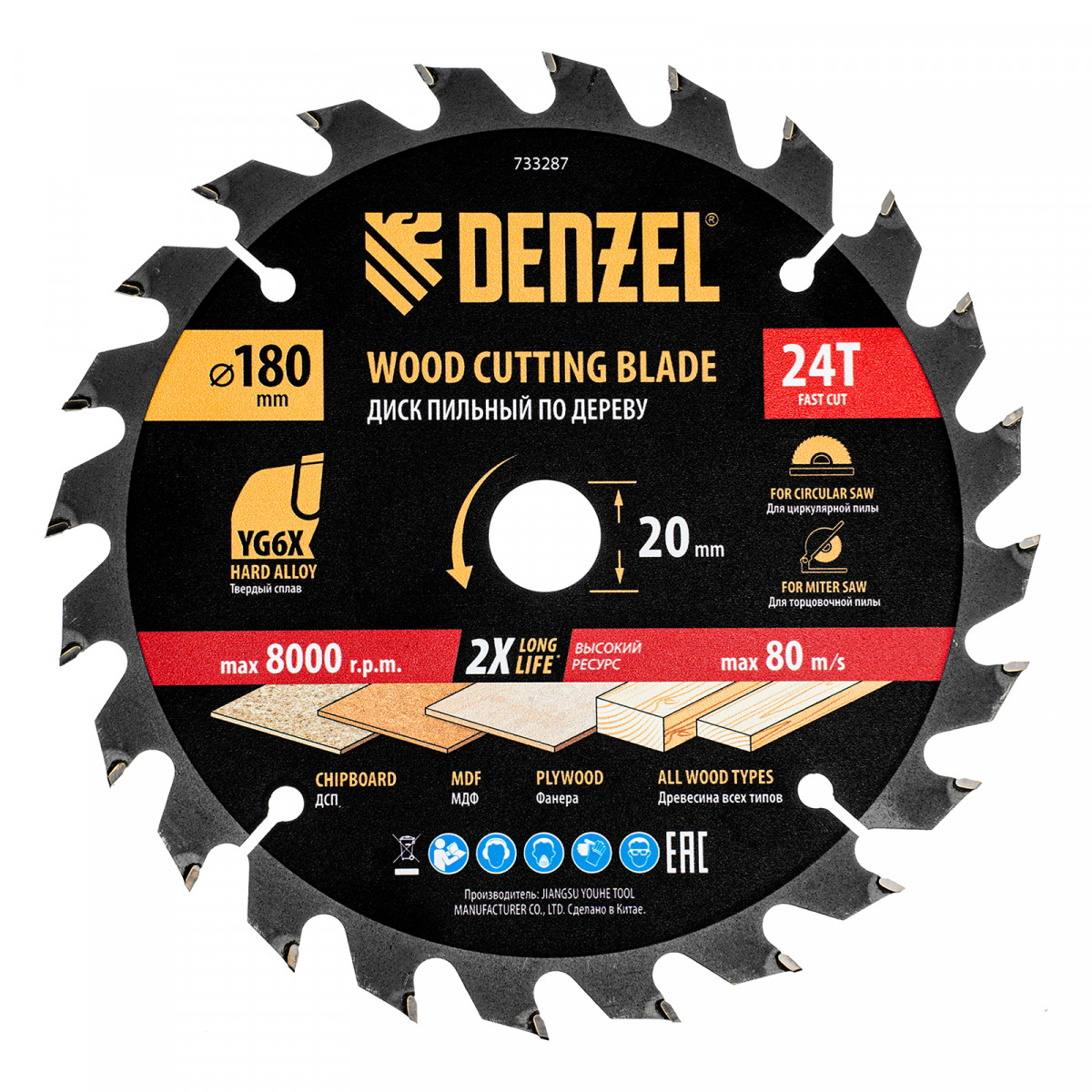 Пильный диск по дереву ф180х 20 мм, 24 зубьев Denzel