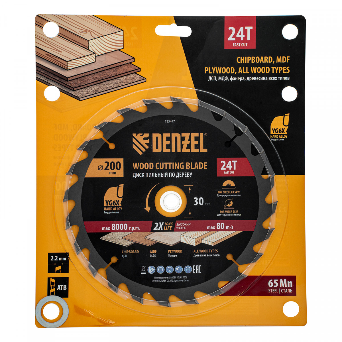 Пильный диск по дереву ф200 х 30 мм, 24 зубьев Denzel