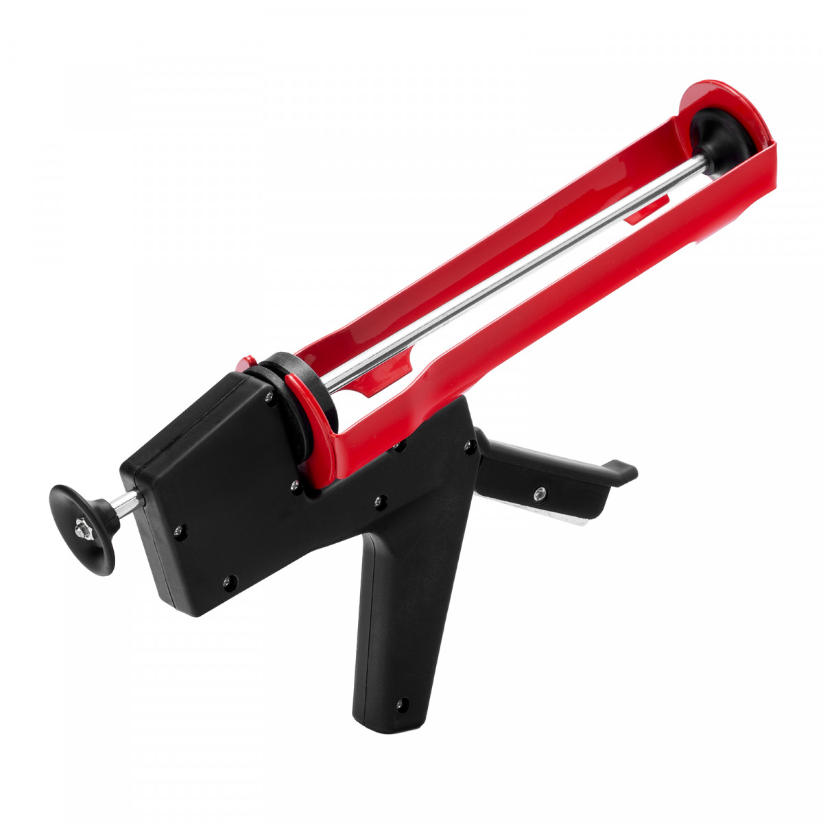 - Комфортная работа — гладкий шток упрощает подачу смеси, рукоятка смещена к центру корпуса, что обеспечивает хорошую балансировку.