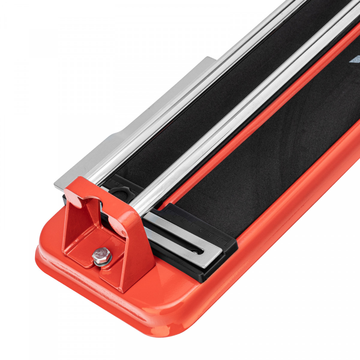- Высокое качество работы — стальное основание обеспечивает устойчивость плиткореза, мягкие амортизирующие накладки предотвращают смещение плитки.
