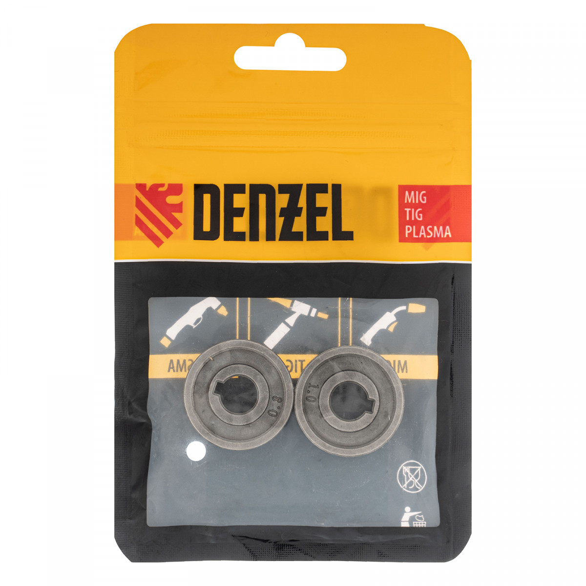 Подающий ролик, зубчатый профиль под флюсовую проволоку 0,8-1мм, 2 шт Denzel