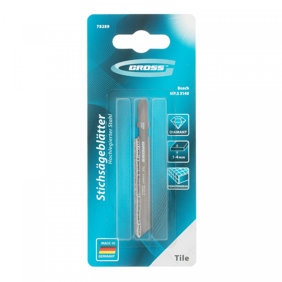 Универсальное полотно для электролобзика Gross 78289 с вакуум-паянной алмазной крошкой (3140) будет полезно частным мастерам и профессионалам при осуществлении ремонтных и строительных работ. Оно оптимально подходит для прямолинейного реза свободным углом листового металла, алюминиевого профиля и труб, твердой и мягкой керамической плитки, пластмассы и оргстекла, древесины и других материалов толщиной 1-4 мм.