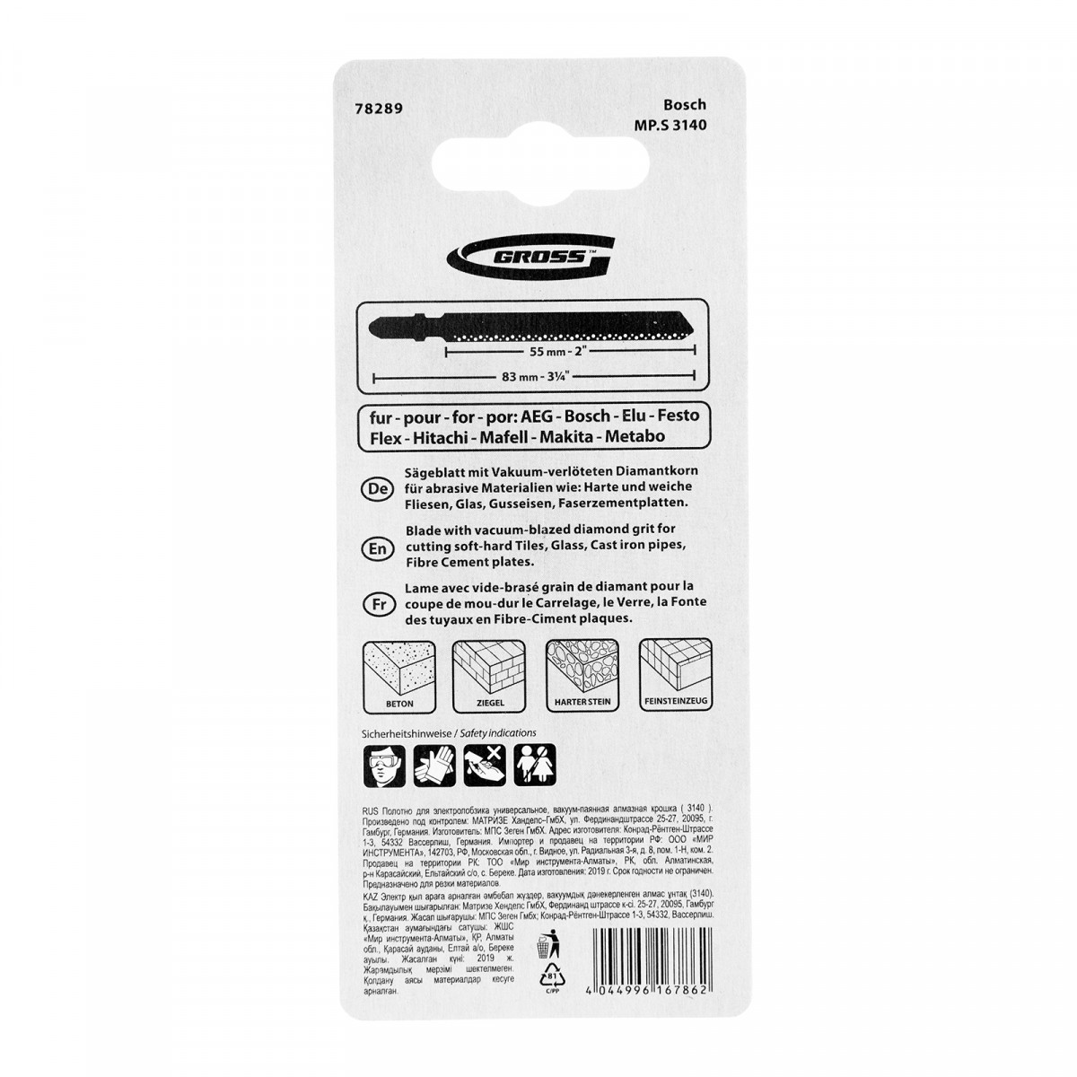 Полотно для электролобзика универсальное, вакуум-паянная алмазная крошка ( 3140 ) Gross