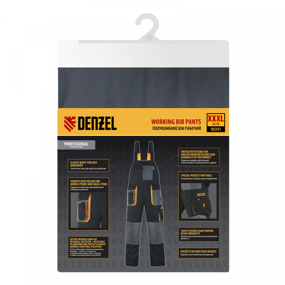 Полукомбинезон профессиональный рабочий, 65% полиэстер 35% хлопок, XXXL Denzel