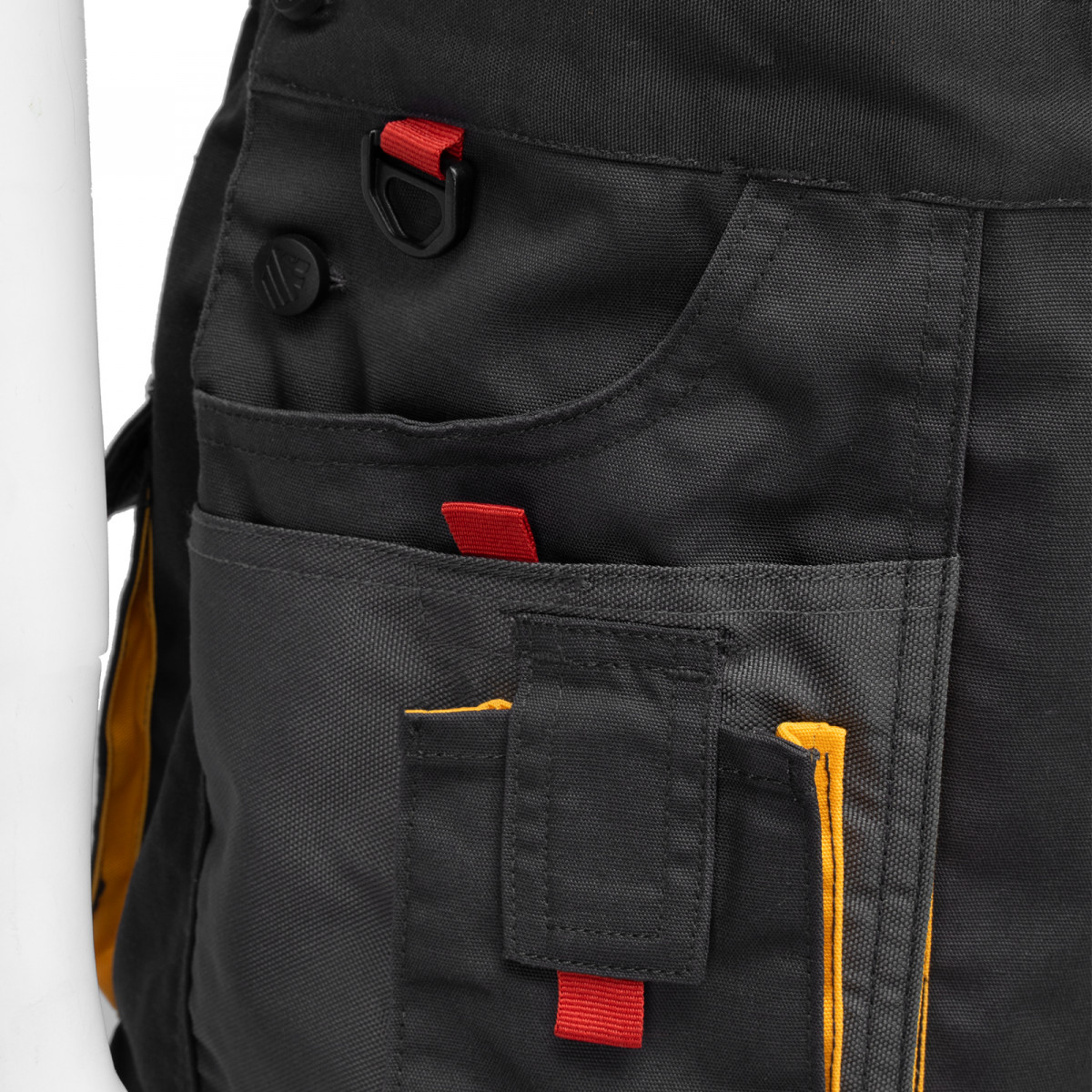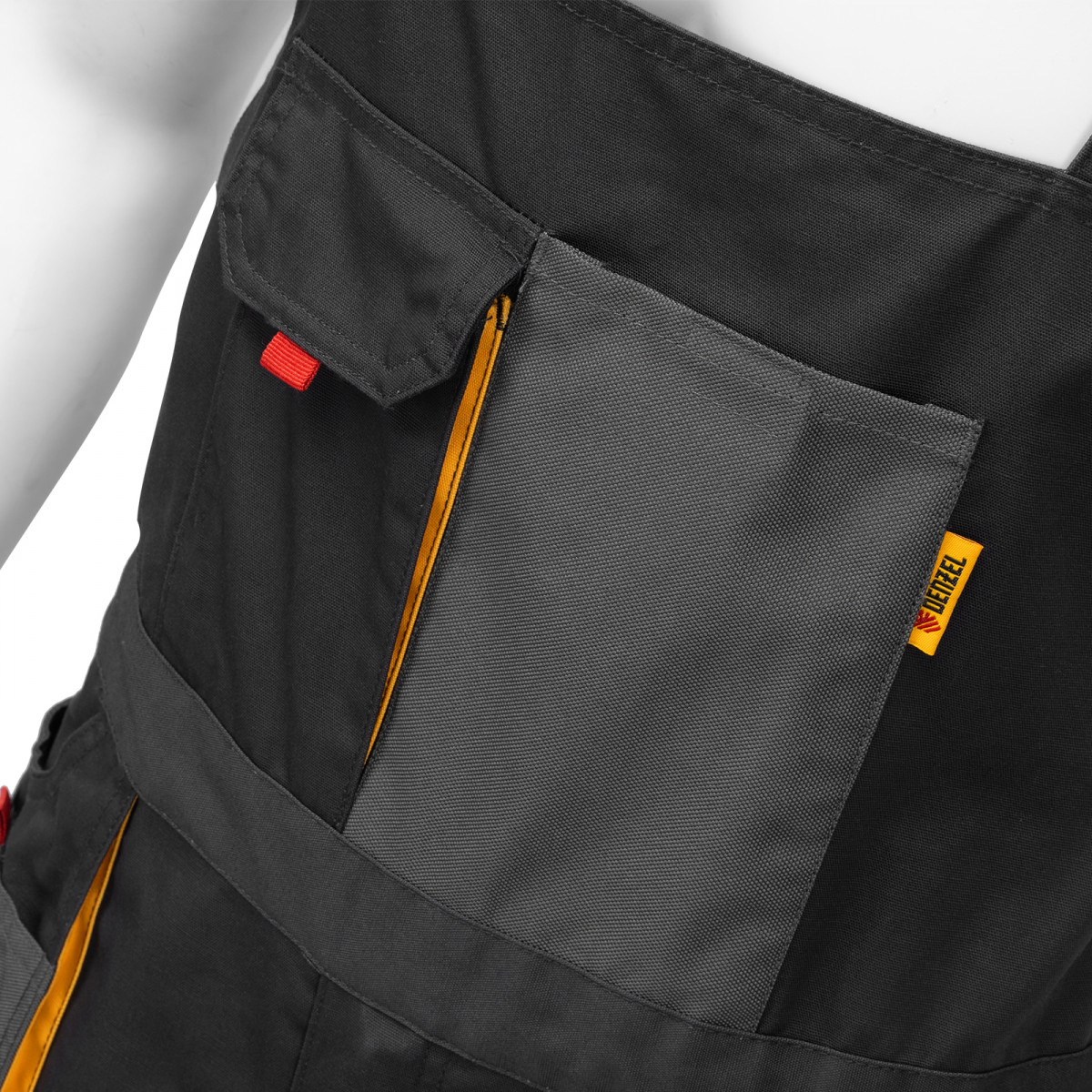 • Большое количество карманов — полукомбинезон снабжен специальными отделениями для инструментов, а в карманах с «липучками» можно разместить мобильный телефон, крепеж и необходимые мелочи.