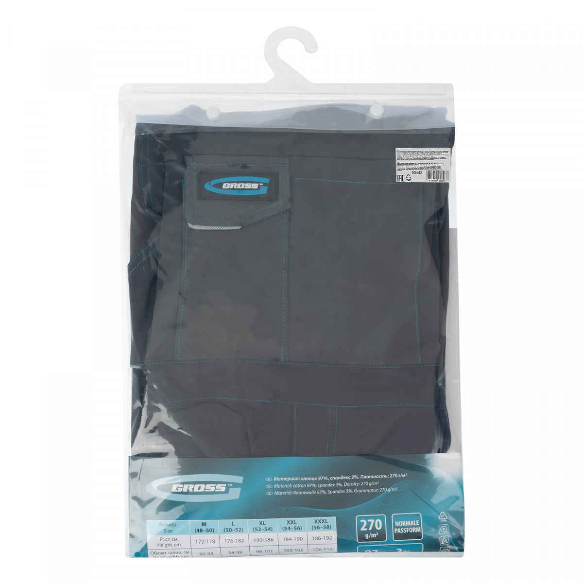 Полукомбинезон профессиональный рабочий, 97% хлопок 3% спандекс, M Gross