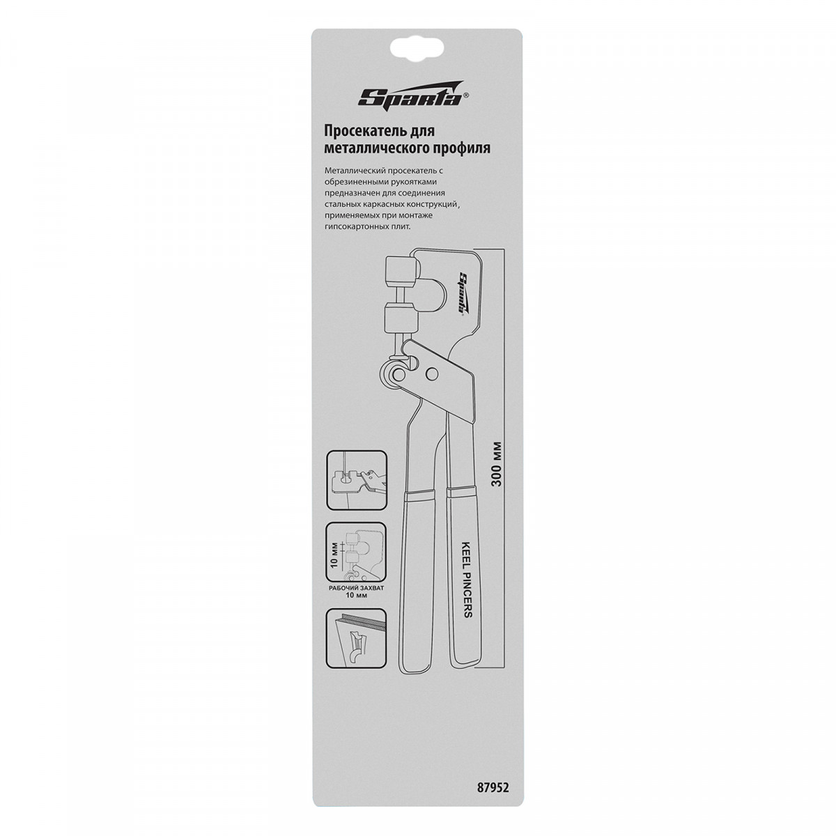 Просекатель Sparta 87952 предназначен для монтажа металлического профиля под гипсокартон. С его помощью можно возвести перегородки или создать каркас под подвесные потолки. Для работы инструментом не требуется специальных навыков, поэтому он будет полезен даже начинающим мастерам.