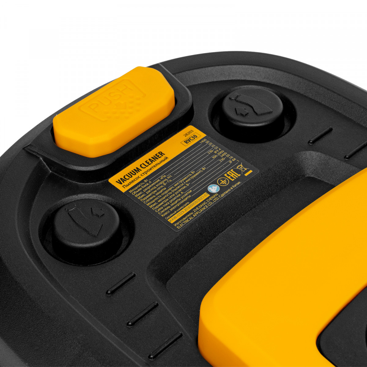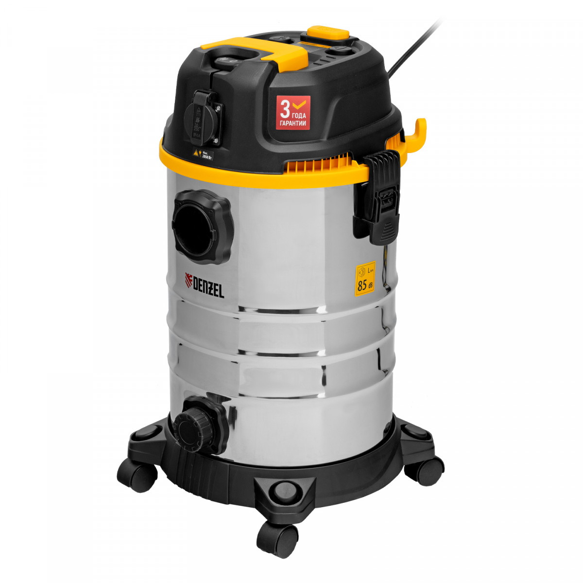 Пылесос строительный RVC30, 1400 Вт, бак 30 л, шланг 3 м, розетка с автосинхр. Denzel