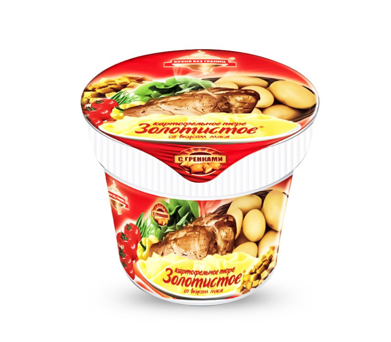 Картофельное пюре говядина с гренками создано из самых высококачественных ингредиентов в соответствии с лучшими традициями и вкусовыми предпочтениями потребителей. Аппетитное пюре в стаканчике готовится за 3 минуты.