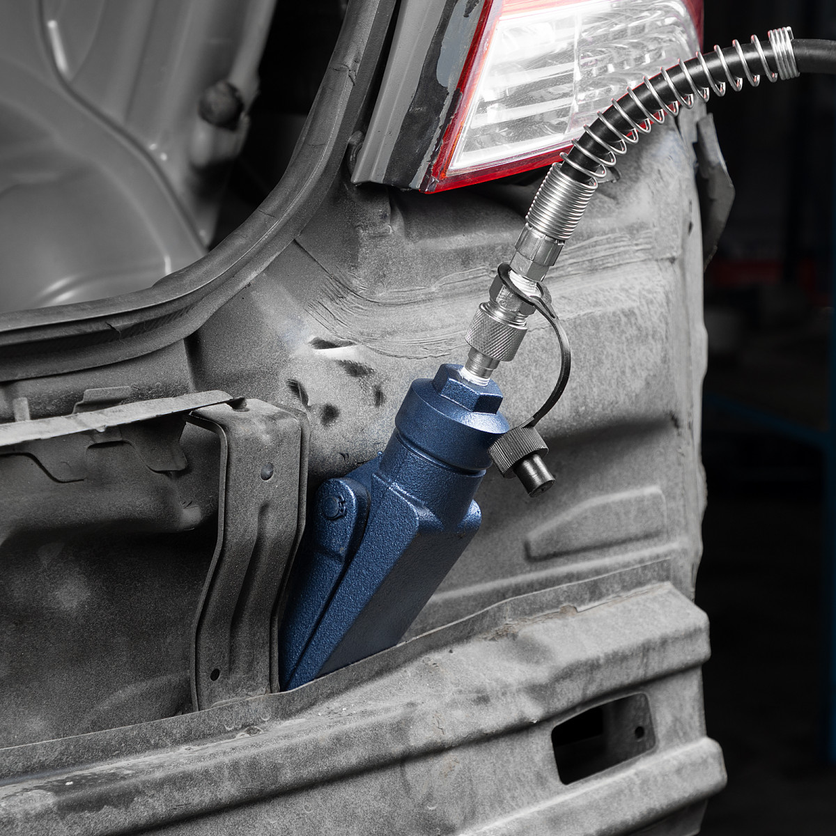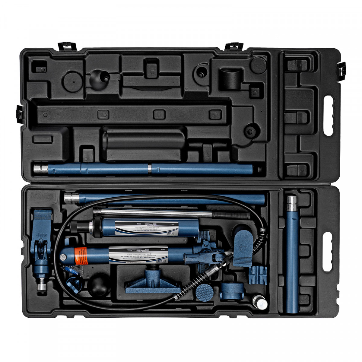 Гидравлическая растяжка Stels 51356, рассчитанная на усилие до 10 т, — компактный набор в пластиковом кейсе на колесах, включающий 17 предметов — цилиндр, гидронасос, адаптер, удлинители, опорную площадку и 7 сменных насадок. Ее используют для рихтовки металлических конструкций и проведения кузовного ремонта. Растяжка эффективно восстанавливает геометрию проемов автомобильных окон и дверей, а также больших участков кузова. Пригодится в автосервисе, будет полезна в гараже.
