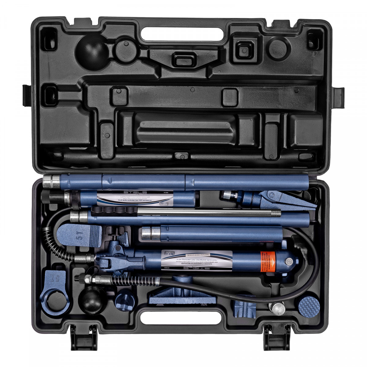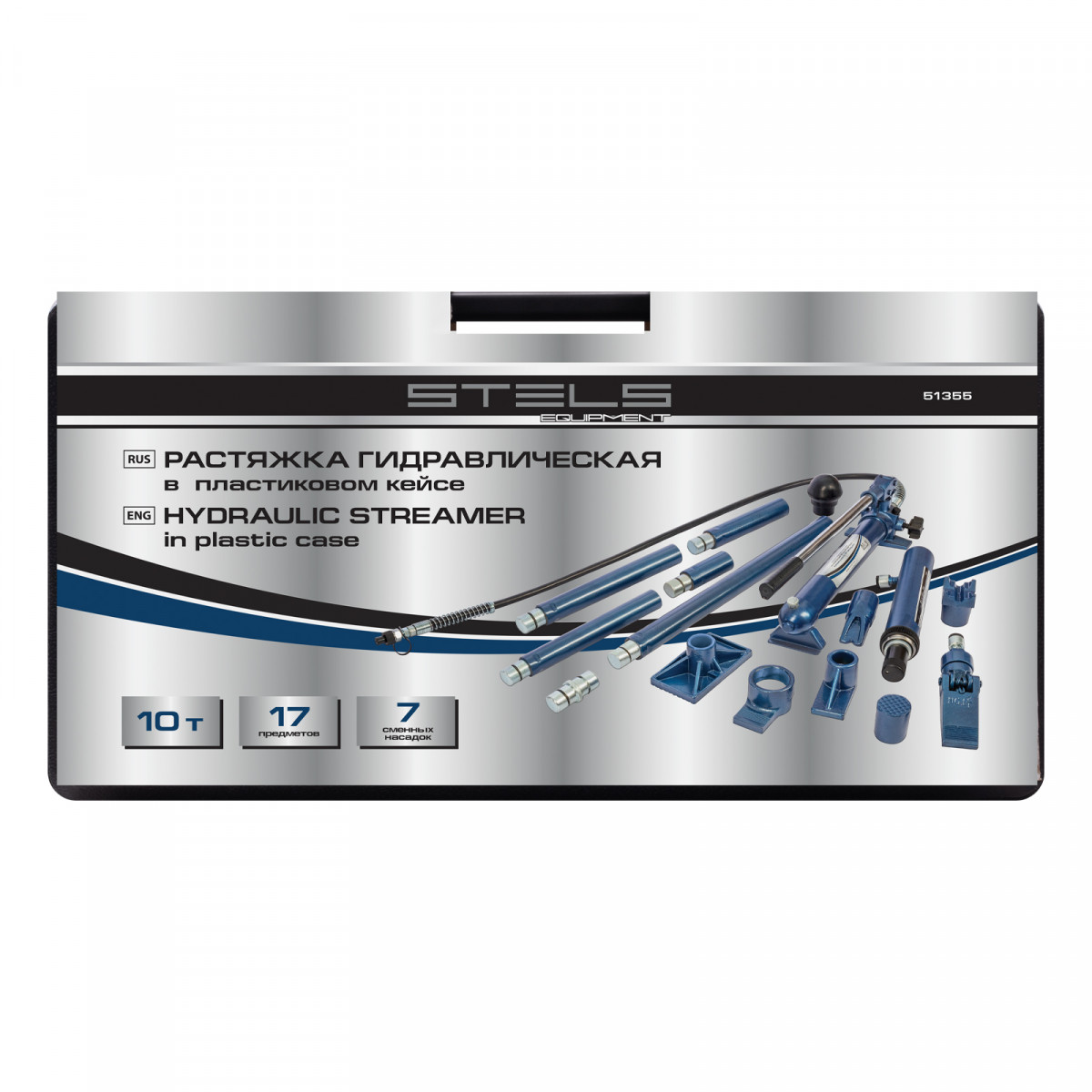 Растяжка гидравлическая, 10 т, набор из 17 предметов, 7 сменных насадок, в пластиковом кейсе Stels