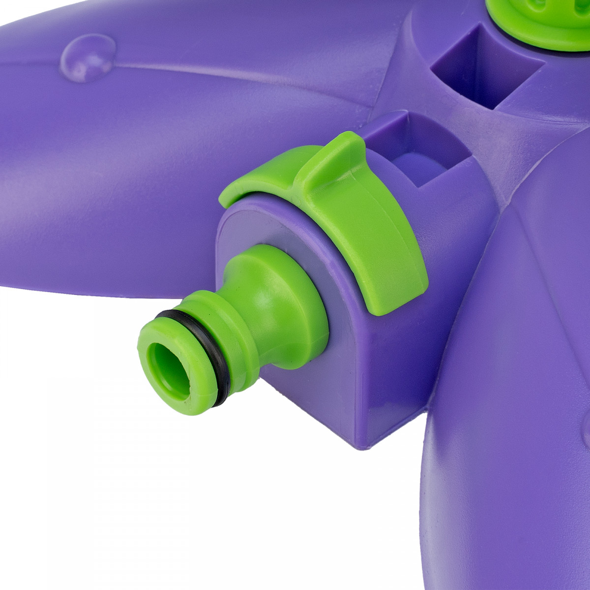 Вращающийся разбрызгиватель Palisad «Бабочка» 65401 с 3 лопастями, с регулировкой, используется для орошения газонов и садовых участков. Максимальная площадь полива составляет 58 кв.м. Дальность распыления можно варьировать от 2 до 4,3 м. На каждой лопасти 4 отверстия, обеспечивающие равномерный полив. Основание выполнено в форме бабочки, что придает устройству оригинальный вид.