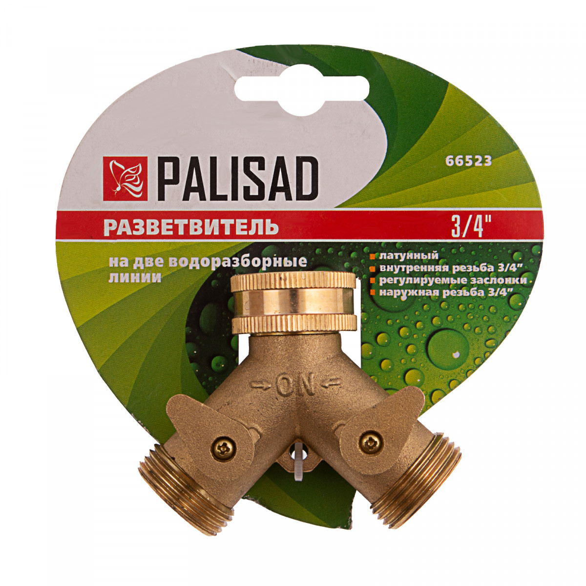Разветвитель двухканальный, регулируемый, внешняя и внутренняя резьба 3/4, латунный Palisad