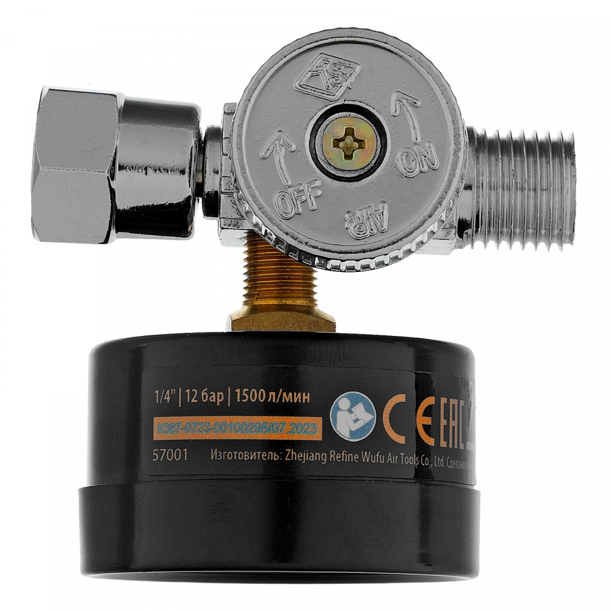 Регулятор давления с манометром для краскораспылителя K1500, 12 бар, 1/4" Denzel