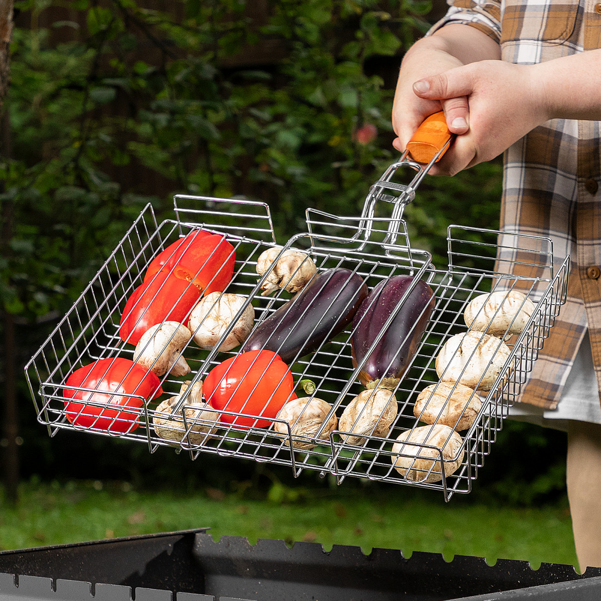 • За счет увеличенных опорных стержней решетка надежно фиксируется на мангале, а для жарки используется вся рабочая площадь.