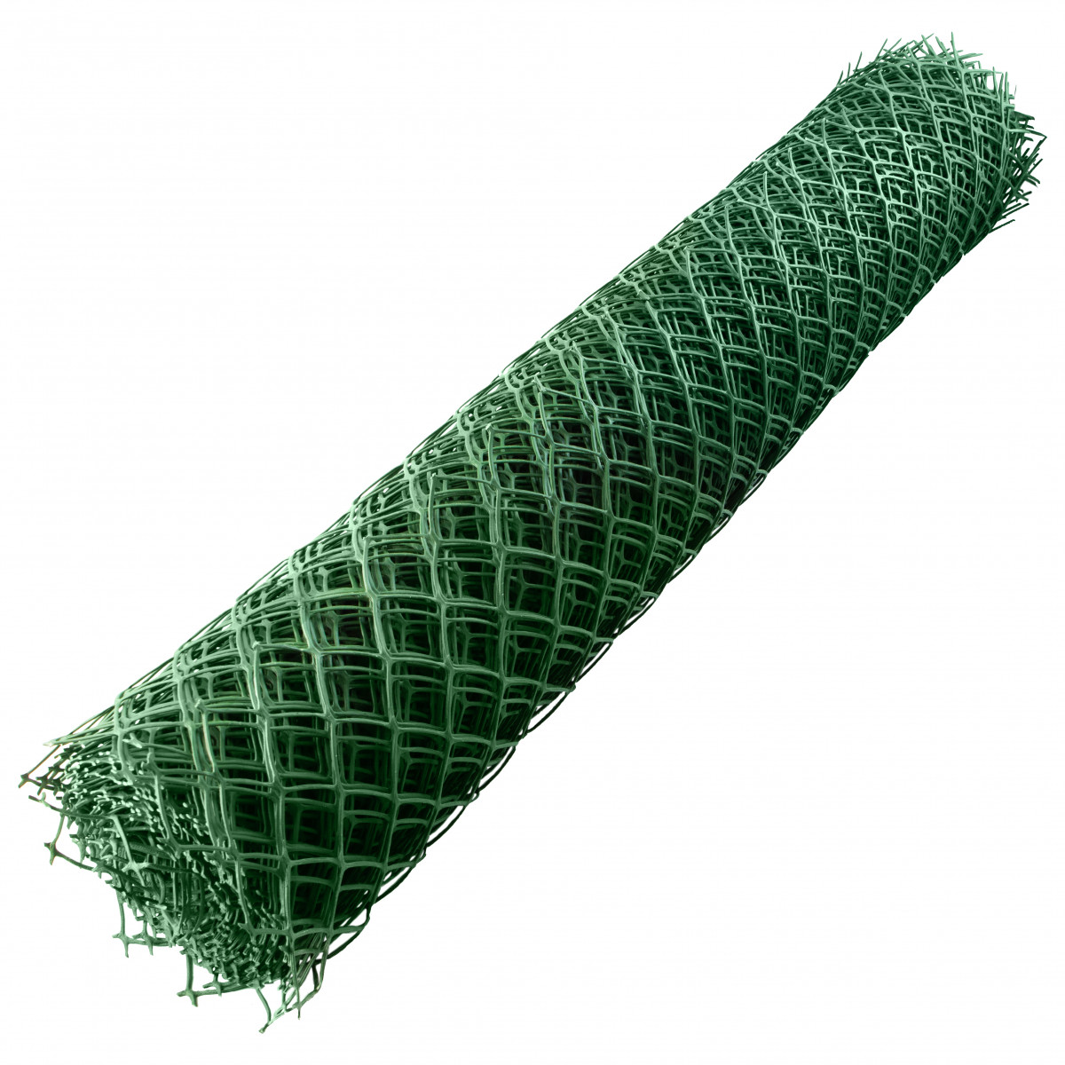 Зеленая пластиковая заборная решетка 64541, 1,8 х 25 м, в рулоне, с ромбовидными ячейками 90 х 100 мм, используется для создания изгороди. С ее помощью можно полностью оградить садовую и жилую территорию или зонировать отдельные участки. Возможно применение изделия в качестве каркаса для живой изгороди или элемента декора вместе с деревянными и каменными материалами. Также решетка пригодится для установки ограды на детских и спортивных площадках, создания вольеров для птиц и животных.