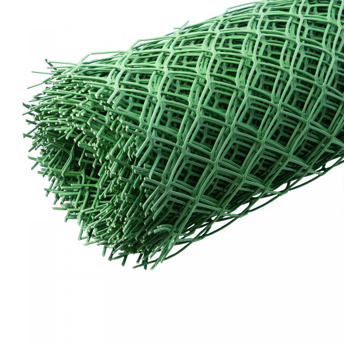 Зеленая пластиковая заборная решетка 64523, 1,5 х 25 м, в рулоне, с ячейками 70 х 70 мм, служит для ограждения садовых и жилых участков. Благодаря ей можно построить забор на детских и спортивных площадках или зонировать пространство на даче. Решетка также позволяет создать живую изгородь в саду или вольер для птиц и животных.