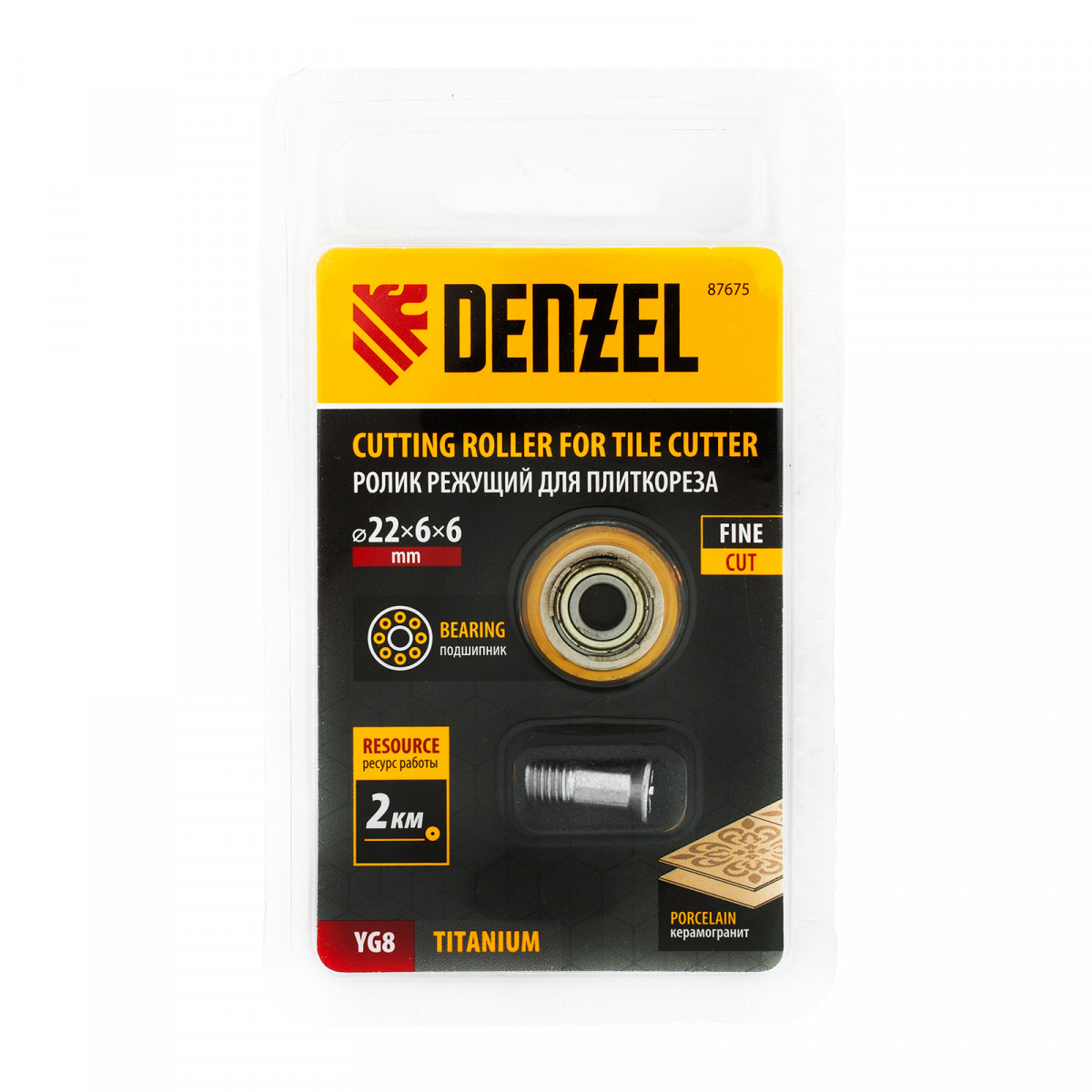 Ролик режущий с подшипником для плиткореза, 22х6х6мм, TiN Denzel