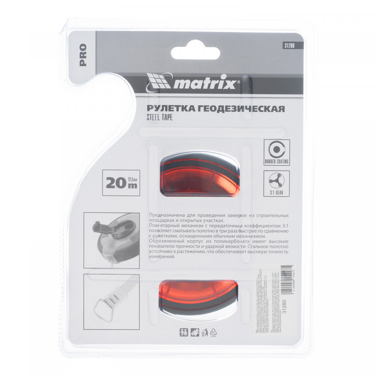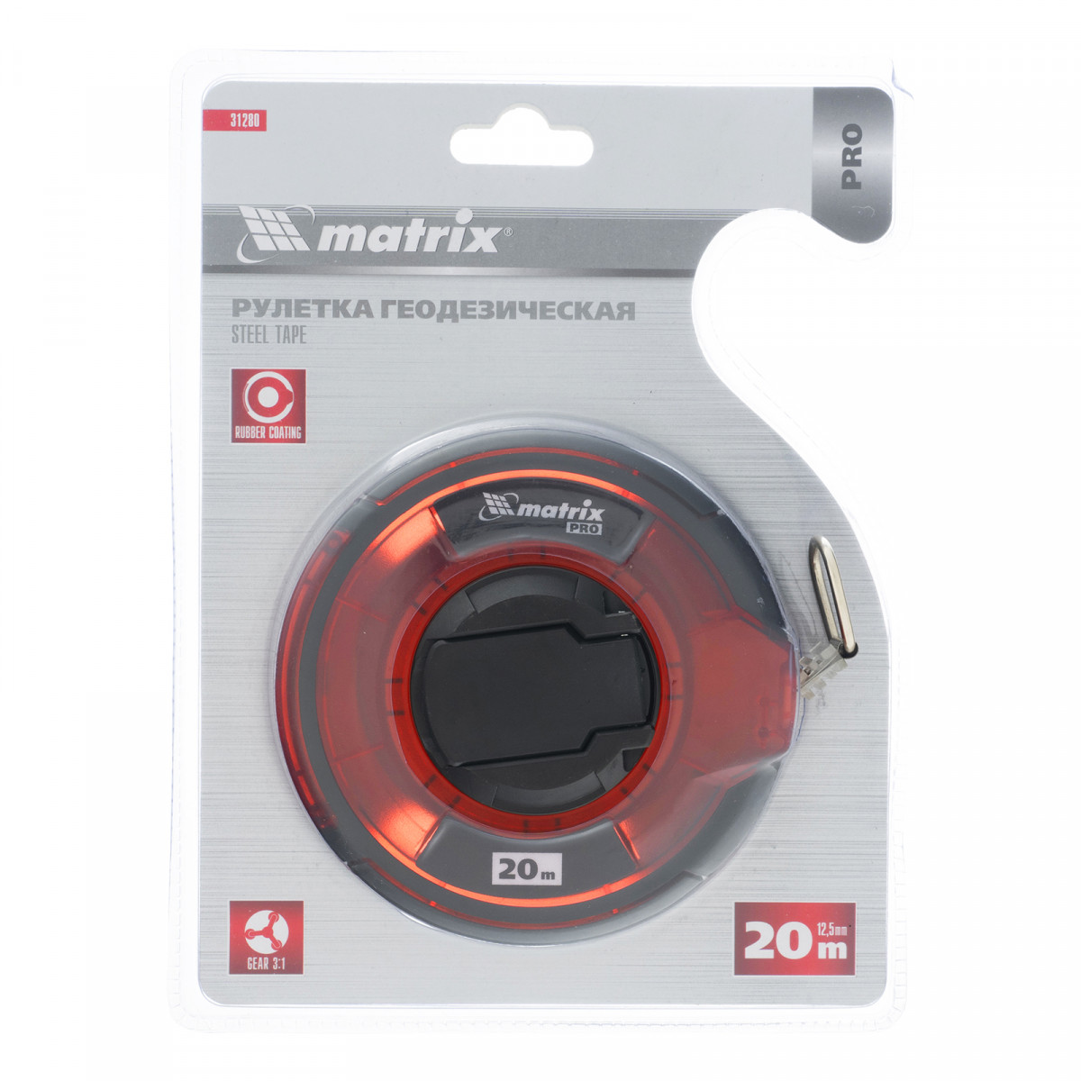 Рулетка геодезическая 20 м х 12,5 мм, закрытый корпус, стальная лента, односторонняя шкала, Pro Matrix