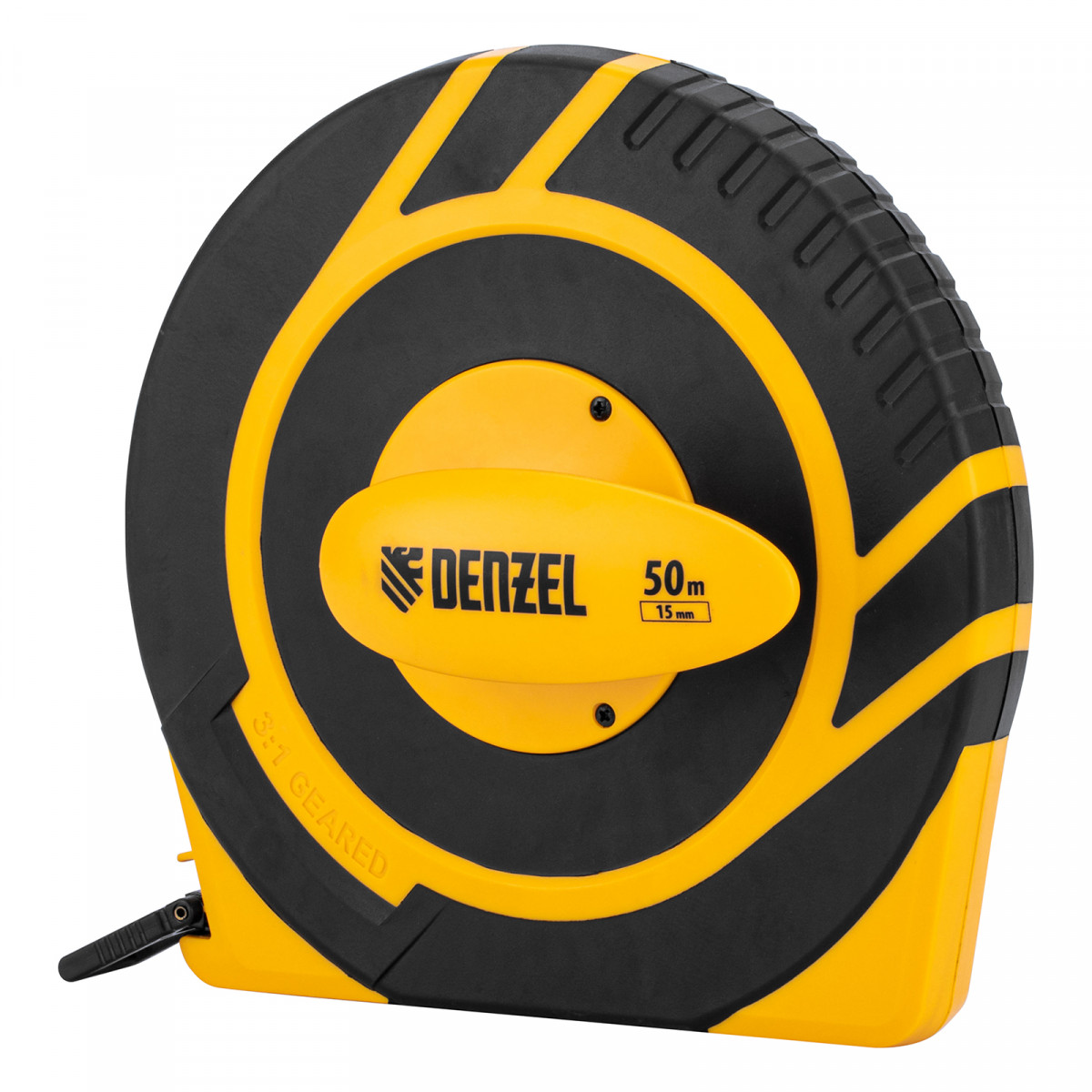 Рулетка геодезическая 50 м х 15 мм, закрытый корпус, фиберглассовая лента Denzel