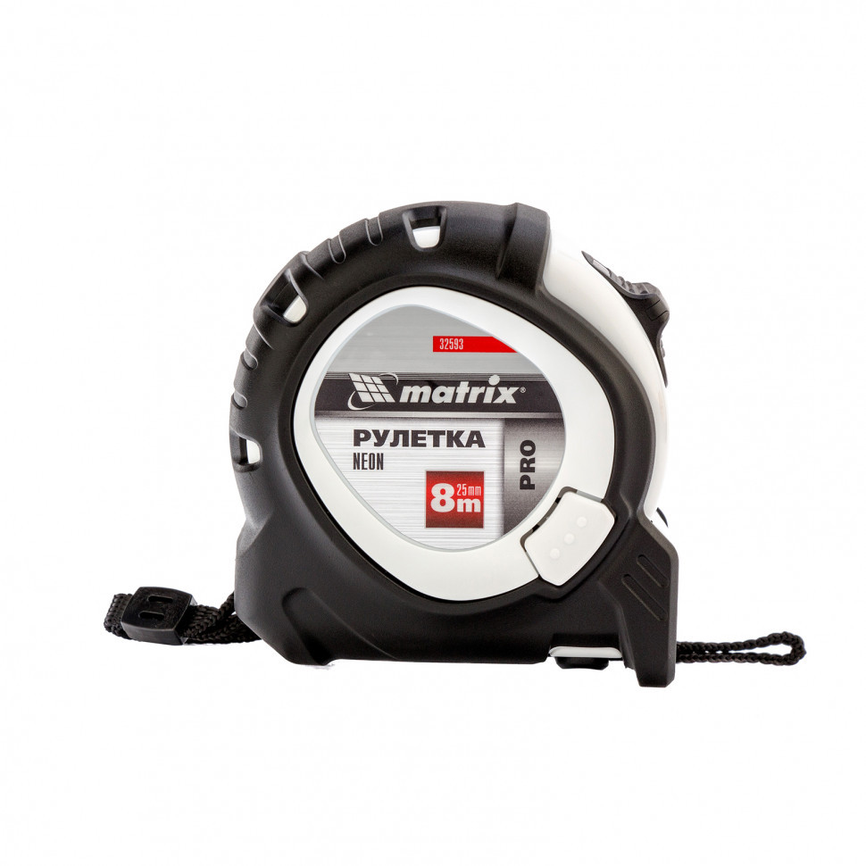Рулетка Neon,8 м x 25 мм,обрезиненный корпус,3 фиксации,Pro Matrix
