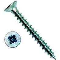 Саморез с потайной головкой и насечками для раззенковки, щлиц. Используется для крепления оконных профилей, а также для крепления фурнитуры к рамам. Имеют резьбу с крупным шагом и наконечник острый. Покрытие белый цинк, материал сталь.