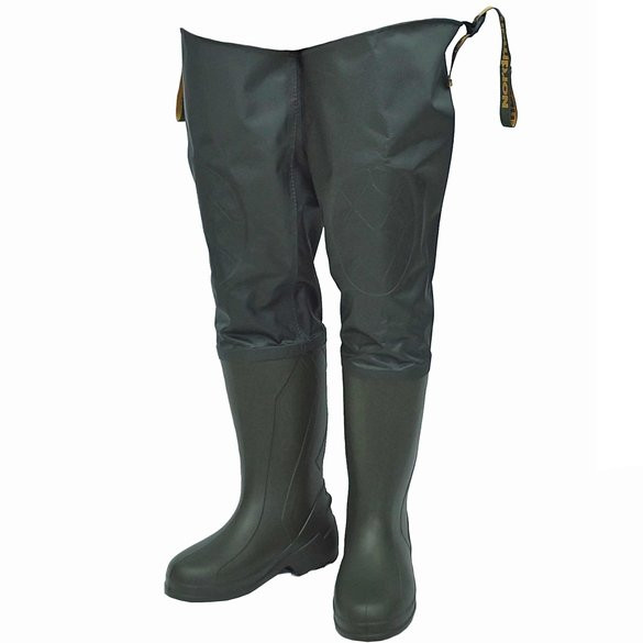 Верхняя часть рыбацких сапог ЭВА крепится к ремню брюк при помощи фиксатора, обеспечивая, таким образом, удобство при передвижении.