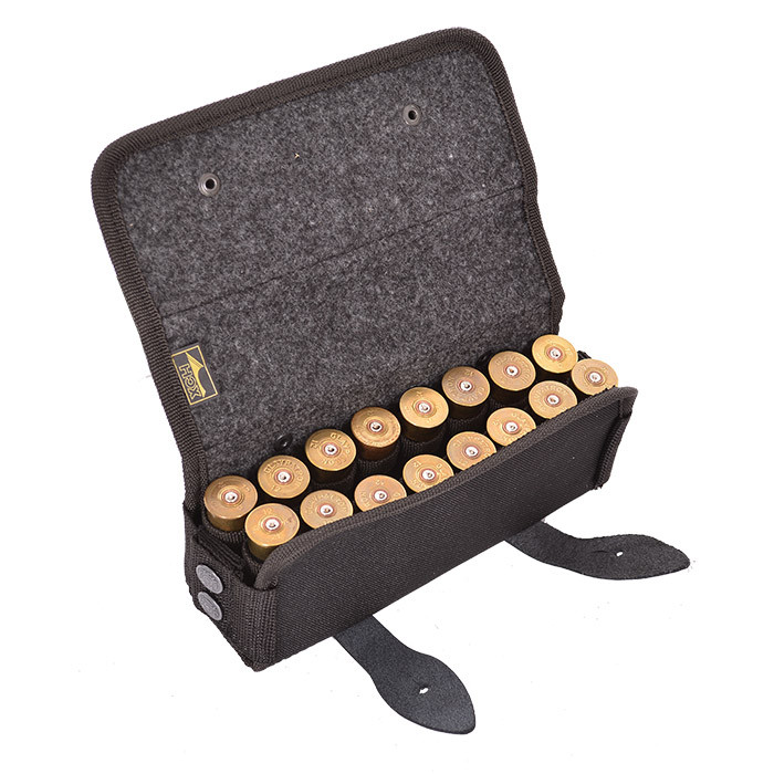 Изготовлена в традиционной форме из специальной ткани. Надежно держит 16 патронов в лузах.