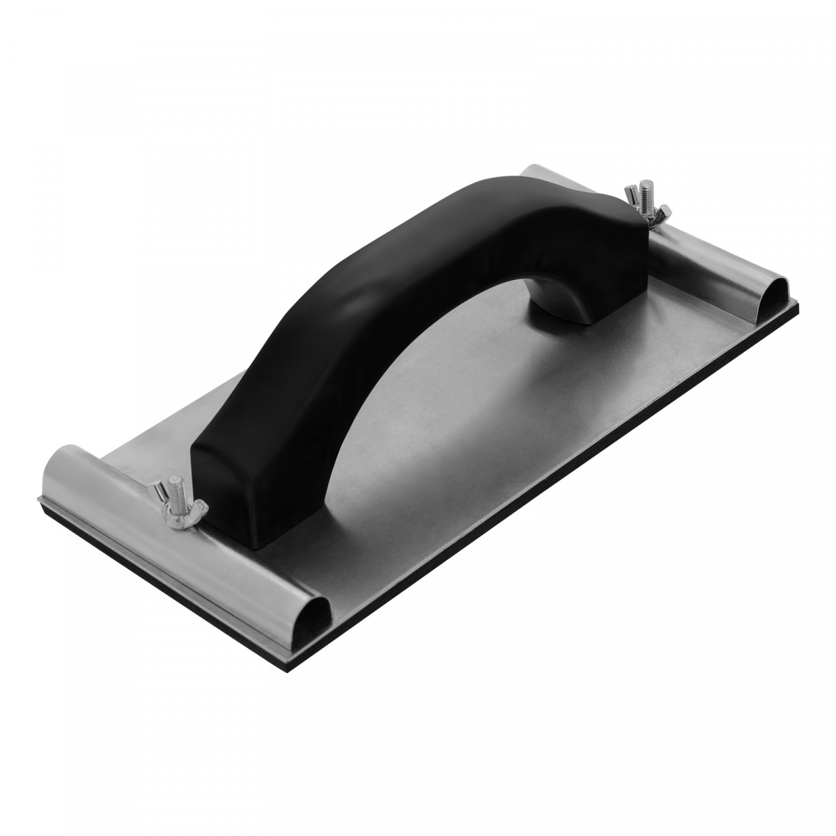 Металлический сеткодержатель Matrix 75856 с подошвой 230 х 105 мм, с зажимами, используется для ручного шлифования деревянных, шпатлеванных, металлических, пластмассовых и прочих твердых поверхностей. Сеткодержатель фиксирует абразивную стеклосетку или шлифлист и позволяет удалять старые отделочные покрытия, подготавливать поверхность под покраску, а также выполнять чистовую обработку.