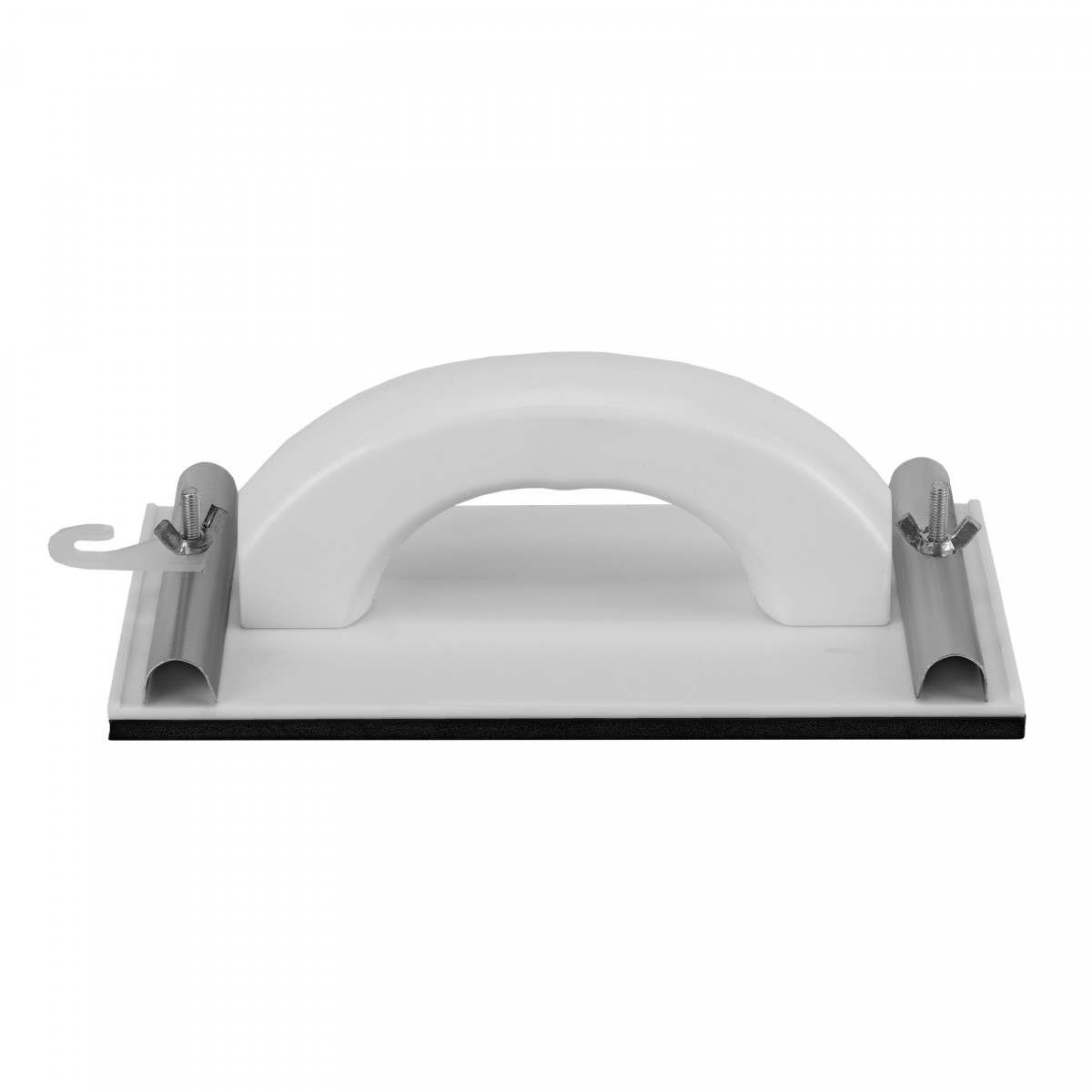 Пластиковый сеткодержатель Sparta 758515 с подошвой 230 х 120 мм, с зажимами, используется для ручного шлифования деревянных, шпатлеванных, металлических, пластмассовых и прочих твердых поверхностей. Сеткодержатель фиксирует абразивную стеклосетку или шлифлист и позволяет удалять старые отделочные покрытия, подготавливать поверхность под покраску, а также выполнять чистовую обработку.