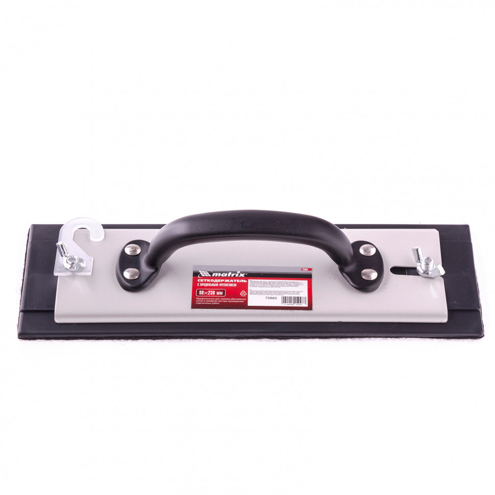 Сеткодержатель Matrix 75860 с подошвой размером 230 х 80 мм, с продольным креплением, используется для подготовки твердых поверхностей к малярно-отделочным и кузовным работам. Надежно фиксирует сетки или шлифлисты любой зернистости, позволяя проводить как грубую, так и тонкую шлифовку древесины, металла, шпатлевки или пластика.