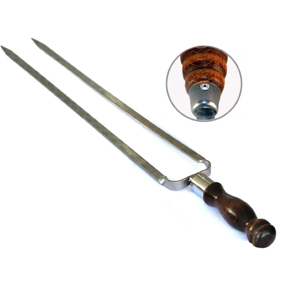 Шампур нержавеющий двойной вилка 450х12х3 мм с ручкой