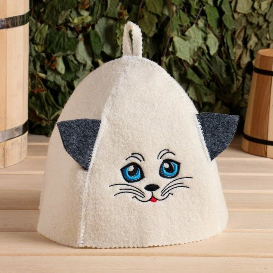 Шапка для бани с детской вышивкой Котик