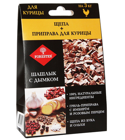 Щепа для копчения+приправа для маринования курицы "Шашлык с дымком" FORESTER