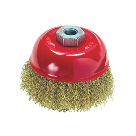 Щетка изготовлена из стальной проволоки. Латунное покрытие. Применяется для очистки металлических поверхностей от ржавчины и грязи в щадящем режиме. Тип посадки – М14.
