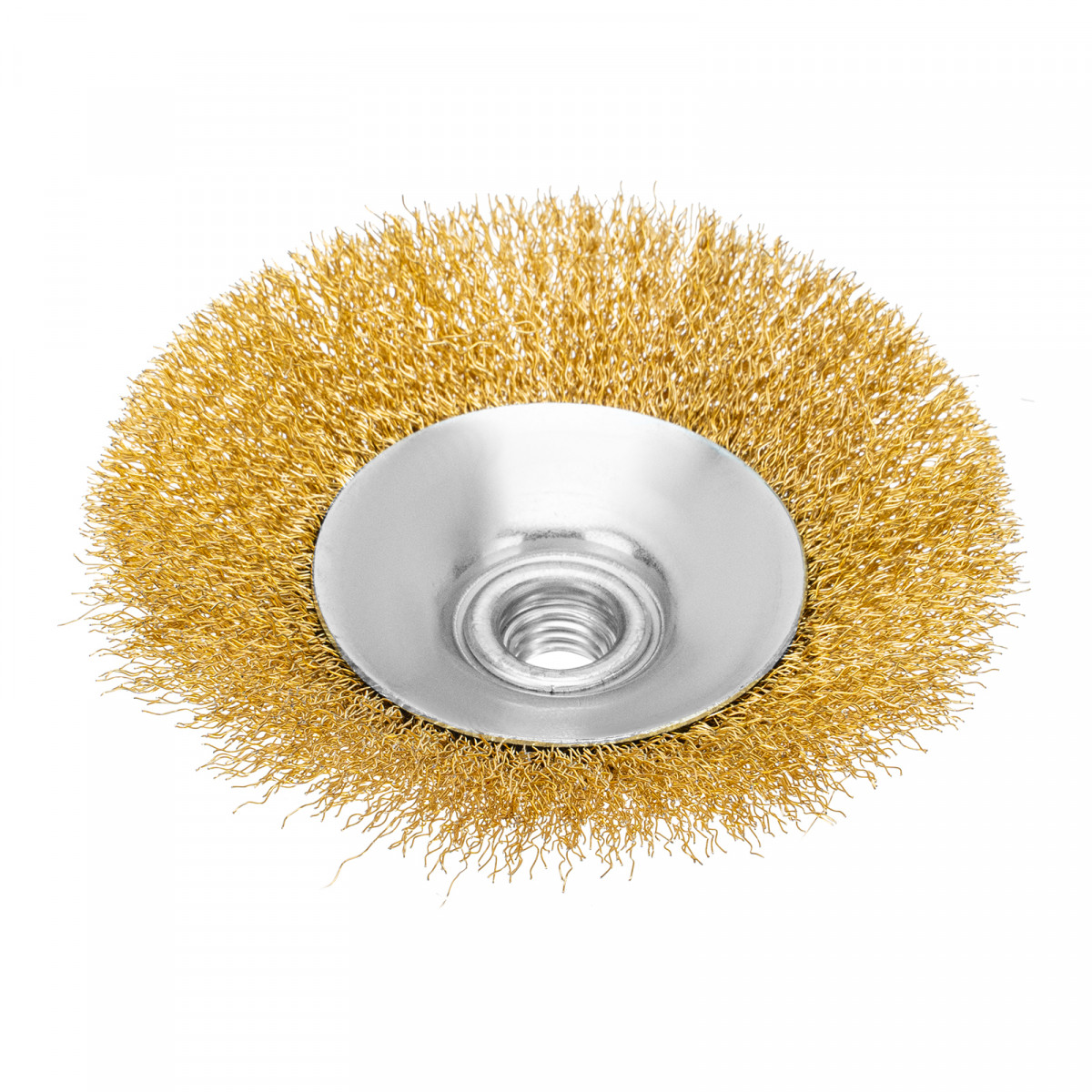 Щетка для УШМ «Тарелка» Denzel 746163, М14, диаметром 125 мм, с щетиной из витой нержавеющей проволоки 0,3 мм, используется для щадящей обработки металлических, в том числе нержавеющих, а также деревянных и пластиковых поверхностей. Постепенно снимает тонкий слой ржавчины, старого лака или краски, удаляет загрязнения. Подходит для придания поверхности заданной шероховатости или подчеркивания структуры дерева. Тарельчатая форма щетки оптимальна для обработки как плоскостей, так и труднодоступных мест. Щетку устанавливают на вал углошлифовальной машины (УШМ), поддерживающей работу со скоростью до 12500 об/мин. Обязательно использование защитных очков, респиратора, перчаток, наушников, спецодежды и обуви. Щетка предназначена для выполнения профессиональных и бытовых работ.